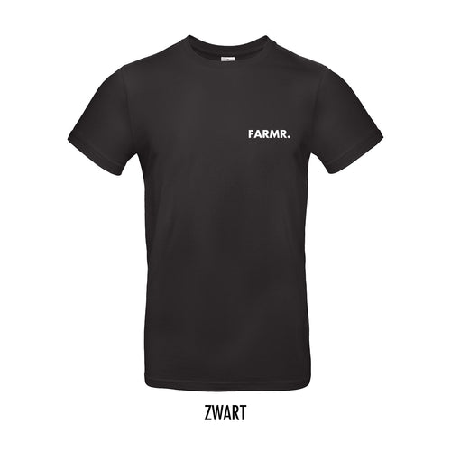 FARMR. zwart shirt met kleine witte volle letters