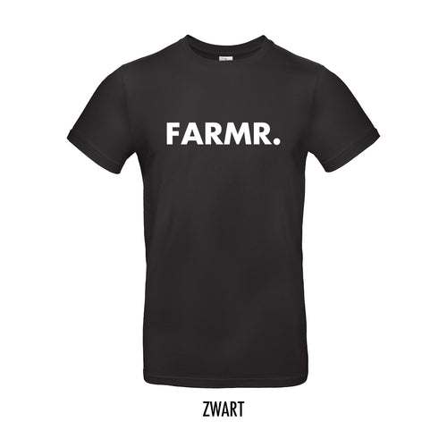 FARMR. zwart shirt met grote witte volle letters